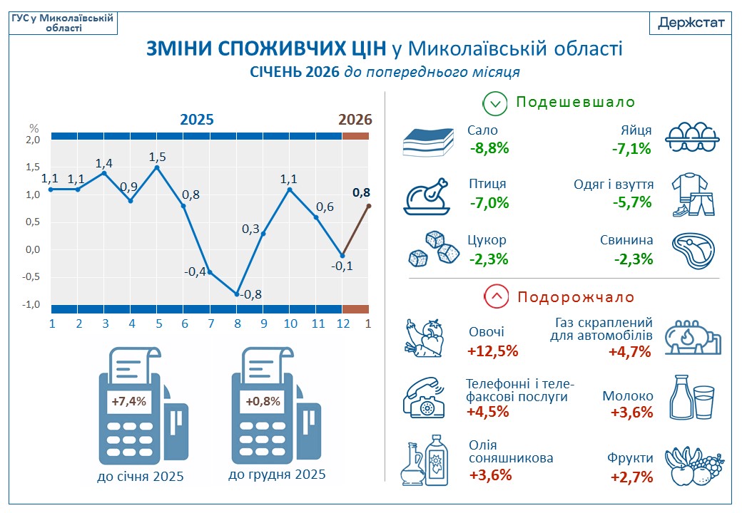Зміни споживчих цін у Миколаївській області у січні 2026 року