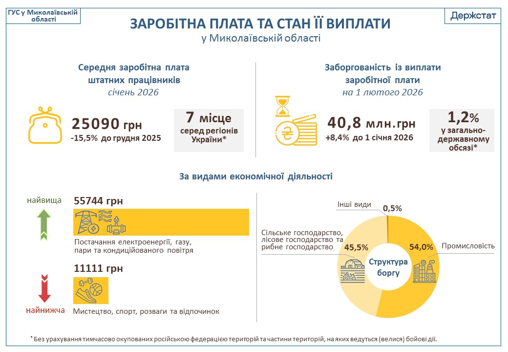 Заробітна плата та стан її виплати у Миколаївській області у січні 2026 року