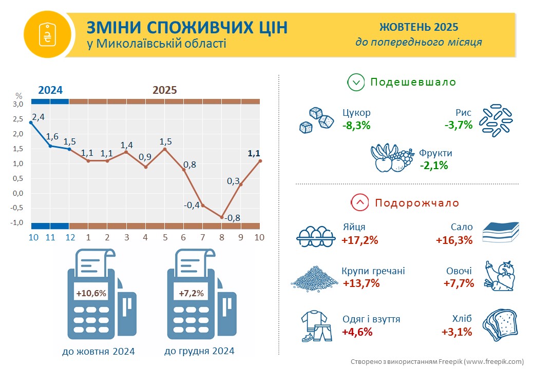 Інфографіка «Зміни споживчих цін у Миколаївській області у жовтні 2025 року» |