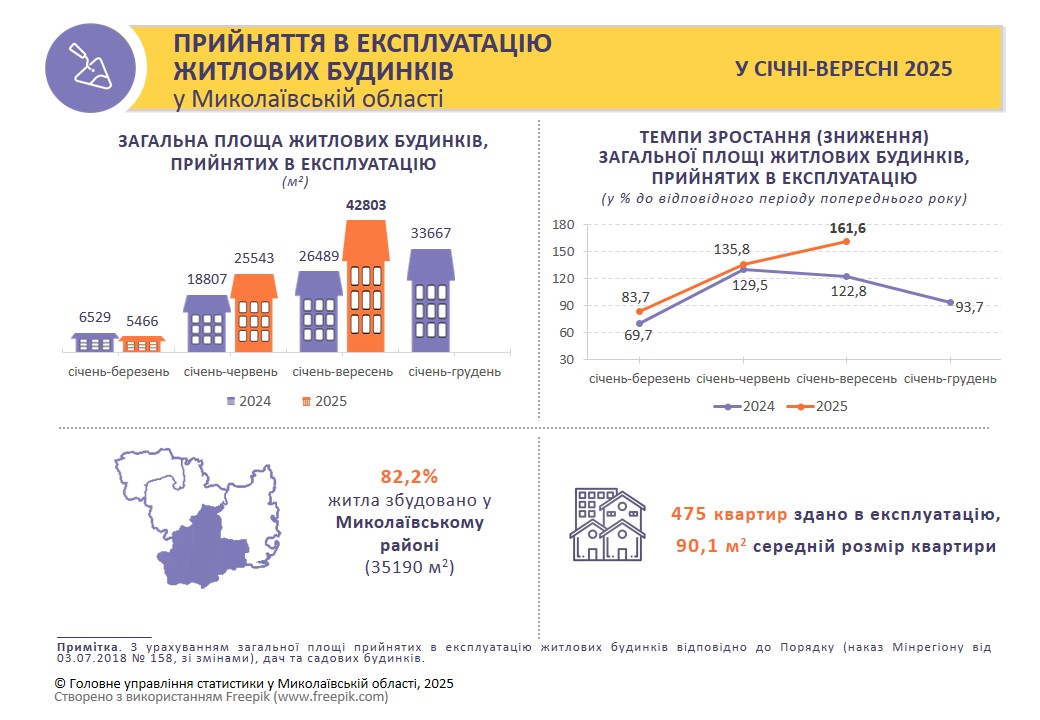 Інфографіка «Прийняття в експлуатацію житлових будинків у Миколаївській області у січні-вересні 2025 року» |