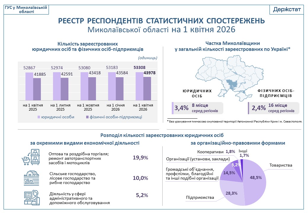 Реєстр респондентів статистичних спостережень Миколаївської області на 1 квітня 2026 року |