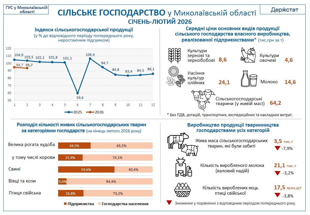 Сільське господарство у Миколаївській області у січні–лютому 2026 року |