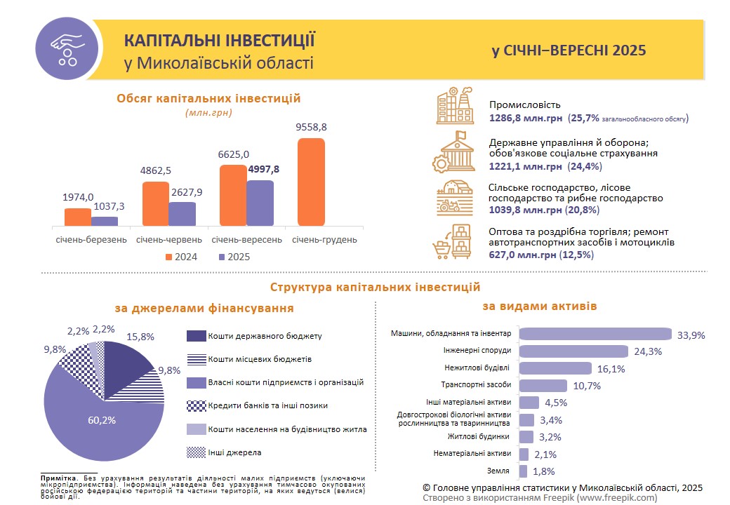 Капітальні інвестиції у Миколаївській області у січні–вересні 2025 року |