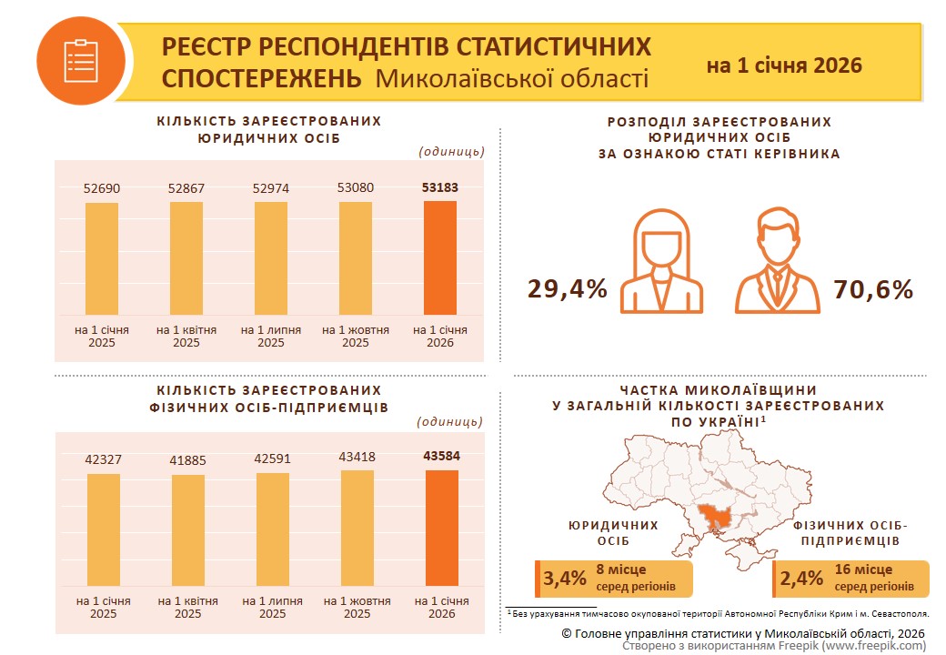 Реєстр респондентів статистичних спостережень Миколаївської області на 1 січня 2026 року |