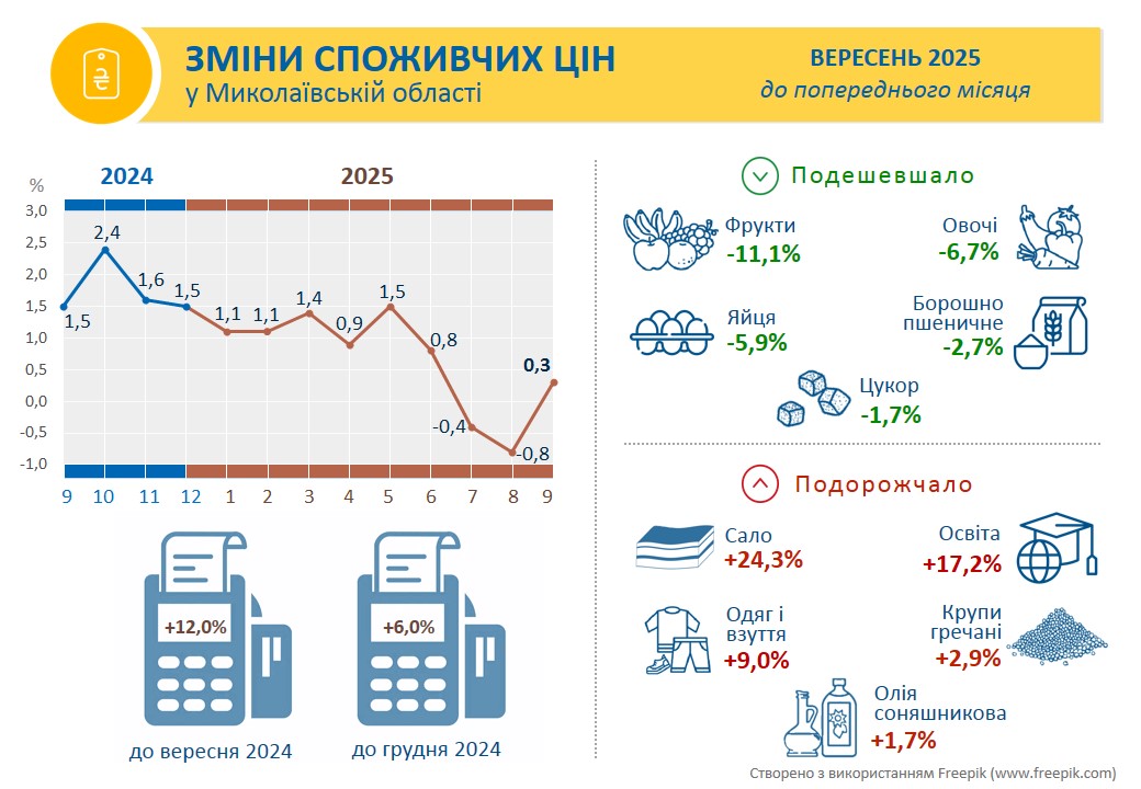 |  Інфографіка  «Зміни споживчих цін у Миколаївській області у вересні 2025 року» |